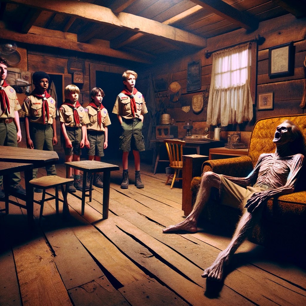 Our dear Scoutmaster Tim Riggs, an unwitting ferryman, guides his flock of five – Kent, Ephraim, Max, Shelley, and Newton – straight into the jaws of horror on the secluded haven of Falstaff Island. It’s supposed to be a typical, boys-will-be-boys adventure until – BAM – in walks Gollum’s Canadian cousin, starving, sick, and setting the stage for an all-you-can-eat horror buffet.