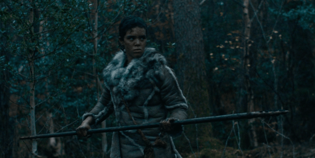 The film takes a wild leap into the prehistoric avant-garde by inventing its own language, Tola. I really appreciate this as it adds to the immersive experience. The bold creative choice of an invented language, complemented by meticulous period research, not only sets Out of Darkness apart but also enhances the storytelling, providing depth and authenticity. Ben Fordesman, the cinematography wizard, must have pitched, “Why bother with special effects when Scottish weather is the original green screen?” The use of natural lighting and the atmospheric soundscape further accentuates the film’s raw, unfiltered essence. The landscape is both breathtaking and a stark reminder that nature is not your friend.