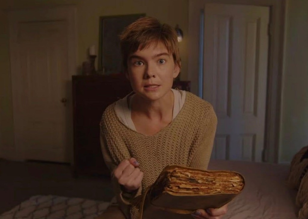 Henes and Merenda took the found footage route, and honestly, it fits okay. Anya’s an influencer, so she’s always recording – it makes sense. They play with the format well at times, using the camera movements to create suspense. One of the best tricks they pulled is the slowly revolving camera during a meditation scene, which is both creepy and clever, reminiscent of one of the best parts of Paranormal Activity 3. But, of course, it has its hiccups. There are moments where you wonder why the hell she’s still filming when she should be running for the hills. Eventually the camera ends up moving on its own which ultimately feels like a way for the filmmakers to cheat the format. And those faux ads they sprinkled in? Funny but non-sensical!