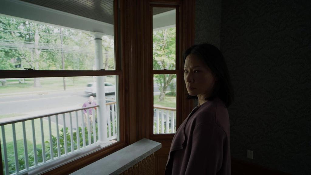 The story follows the Payne family as they move into a beautiful Craftsman-style home with more than its share of secrets. Rebecca (Lucy Liu) is the hard-charging matriarch, laser-focused on her son Tyler’s athletic success while neglecting her sensitive daughter Chloe (Callina Liang). Chris (Chris Sullivan; I Trapped the Devil, Morgan) is the affable, slightly overwhelmed dad trying to keep the peace. Tyler (Eddy Maday) is the golden child with a real nasty streak, and Chloe, still grieving the overdose death of her best friend, is the heart of the story—and the first to sense the ghost’s presence.