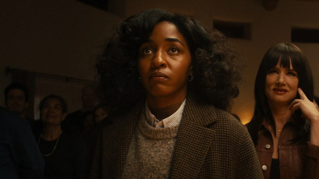 John Malkovich is the beating heart of this mess, and thank fuck for that. As Moretti, he’s a slithering, campy delight—part Bowie, part Bond villain, all Malkovich. He sings his own tunes (penned by Nile Rodgers and The-Dream, no less) and gyrates like a disco snake, owning every frame with a mix of menace and absurdity. It’s the kind of unhinged shit that makes you forgive the film’s flaws for a hot minute. That being said as much as I love Malkovich, I have a hell of a time buying him as a pop star even if he’s the perfect cult leader. Ayo Edebiri’s solid as Ariel, bringing a dry wit and quiet grit to a role that’s more plot device than person—she’s the Final Girl we root for, even if she’s stuck in neutral. Murray Bartlett’s Stan is a smarmy prick you love to hate, but he’s undercooked, like most of the cast. Juliette Lewis, Amber Midthunder, Tony Hale—they’re all wasted, floating through scenes with nothing to chew on. It’s a damn shame, because this ensemble could’ve torn the roof off with a better script.