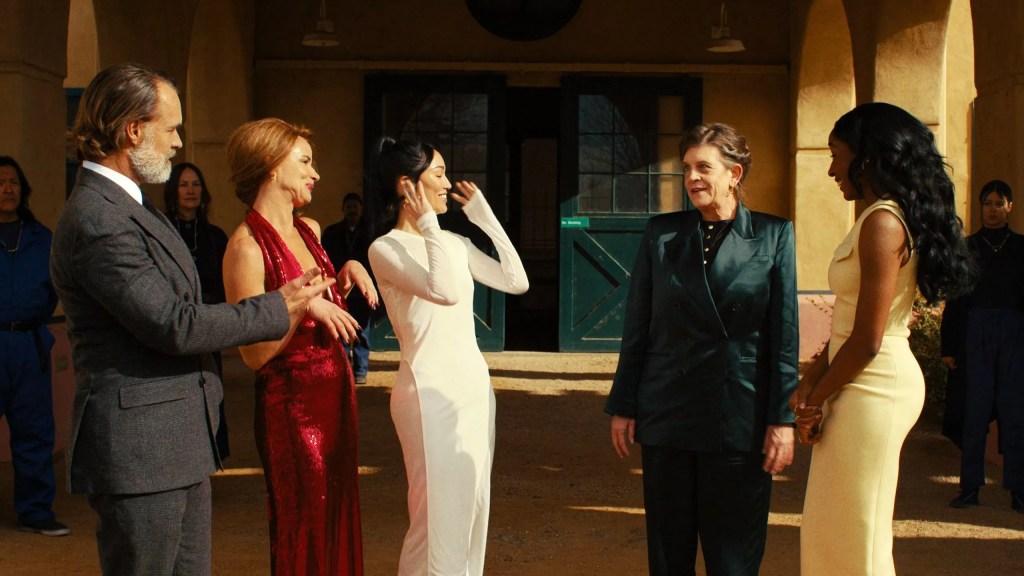 Here’s the skinny: Opus follows Ariel Ecton (Ayo Edebiri), a 27-year-old music journo who’s stuck in the purgatory of a glossy mag, her pitches constantly swiped by her smarmy editor, Stan Sullivan (Murray Bartlett). She’s the “middle as fuck” everyman—too normal to stand out, too ambitious to quit. Then, bam, a golden ticket lands in her lap: an invite to the desert compound of Alfred Moretti (John Malkovich), a ‘90s pop god who’s been MIA for 30 years and is now hyping his comeback album, Caesar’s Request. Ariel’s joined by a gaggle of media vultures—Stan, a gossipy TV host (Juliette Lewis), a paparazzo (Melissa Chambers), an influencer (Stephanie Suganami), and a podcaster (Mark Sivertsen)—all drooling for a piece of Moretti’s mystique.