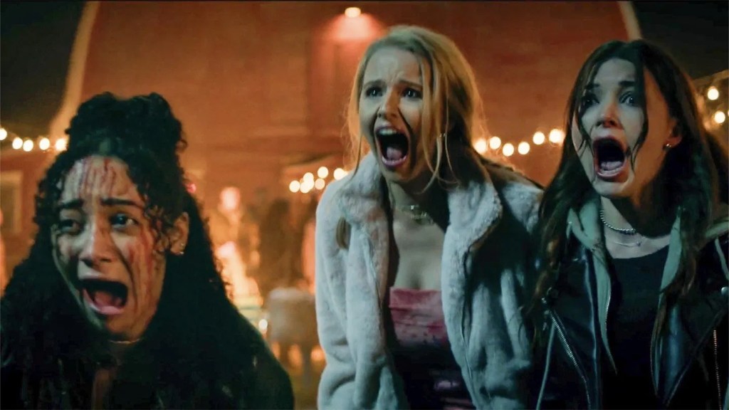 The script dances with meta awareness. Characters name-drop ’80s slashers while deaths replicate them brutally, yet there’s emotional sincerity under the cheekbones. Quinn’s grief over losing her mother gives her stakes beyond dodging machetes. The writers refuse to flatten teen experiences into caricature; the group have arguments about the future of their town, about being blamed for adult failures. That friction speaks to something bigger: Disillusioned youth inheriting environments they didn’t wreck, stepping into patterns they’ve been told to follow, or else.