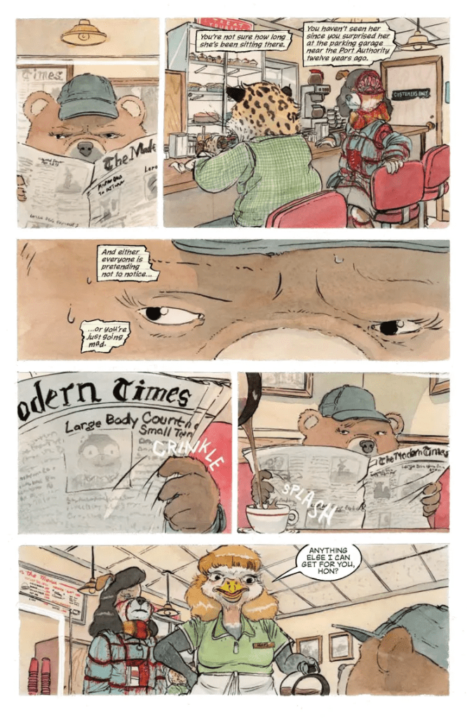 Horvath’s originality is the book’s beating heart. By marrying Richard Scarry’s Busytown to a serial killer thriller, he crafts a premise that’s as audacious as it is unsettling. The juxtaposition of cute critters and graphic violence isn’t a gimmick, but a masterstroke that redefines horror’s boundaries. Samantha is a triumph: a deplorable yet magnetic antihero whose calm brutality fascinates. Her investigation, driven by ego as much as self-preservation, crackles with tension, and the supporting cast (nervous parakeets, smug turtles) adds texture without stealing focus. The pacing is relentless, each of the six issues escalating the stakes with surgical precision. Otsmane-Elhaou’s lettering deserves special praise, giving each character a distinct voice that enhances the claustrophobic atmosphere.