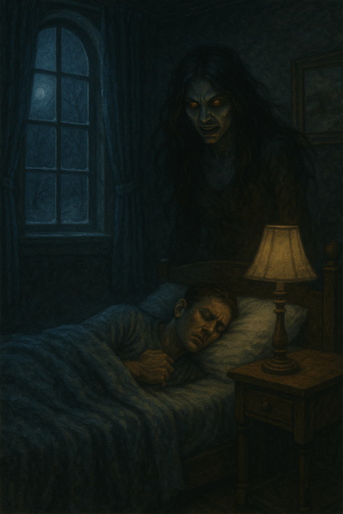 Eisha is also, on paper, a cool choice. She is not just a wispy Victorian ghost. She is an almost vampiric, jinn adjacent entity, seductive and terrifying, showing up in a red dress and then later in full monstrous form, all claws and tail. The ritual in the snowy garden, Clay chanting for her to use his blood to return while something heavy drags itself through the woods toward the wall, is one of the book’s best set pieces. The holy water bait and switch during the climax is satisfyingly pulp. Moments like that show the book Lange clearly thought he was writing: occult mystery, horny nightmare, and wintry siege horror all stacked together.