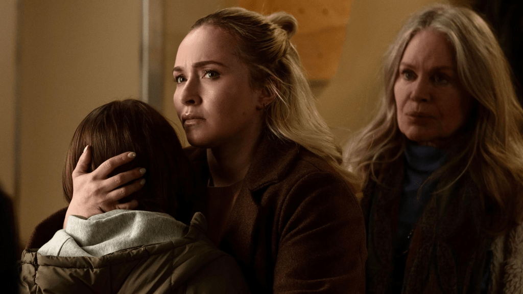 Hayden Panettiere is doing real work. She sells exhaustion in a way that feels lived-in, like her bones are full of wet sand. Even when the script starts repeating itself, she keeps fighting for emotional continuity. Beverly D’Angelo, as Sarah’s mother Gloria, is a welcome blast of sharpness. She brings an acidic, grounded presence that cuts through the fog. When she is on screen, the movie briefly remembers that tension can come from people, not just spooky editing tricks. Some of the other supporting roles feel underwritten or oddly deployed, like pieces moved around to trigger plot beats instead of characters behaving like humans. That contributes to the film’s floaty unreality, but not in a flattering way.